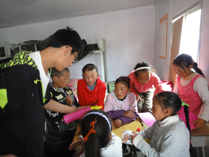“这里的孩子只有语文、数学和藏语课程,我们结合自己的专业特色,帮助孩子们学习科技文化知识。水火箭制作工艺简单,取材方便,便于我们与孩子们在制作中沟通交流。我们把孩子们制作的水火箭都收集起来,明天我们与孩子们一起举行水火箭比赛,让孩子们看到自己制作的水火箭升上天空,收获喜悦。”负责水火箭制作的服务团成员冯悦说。