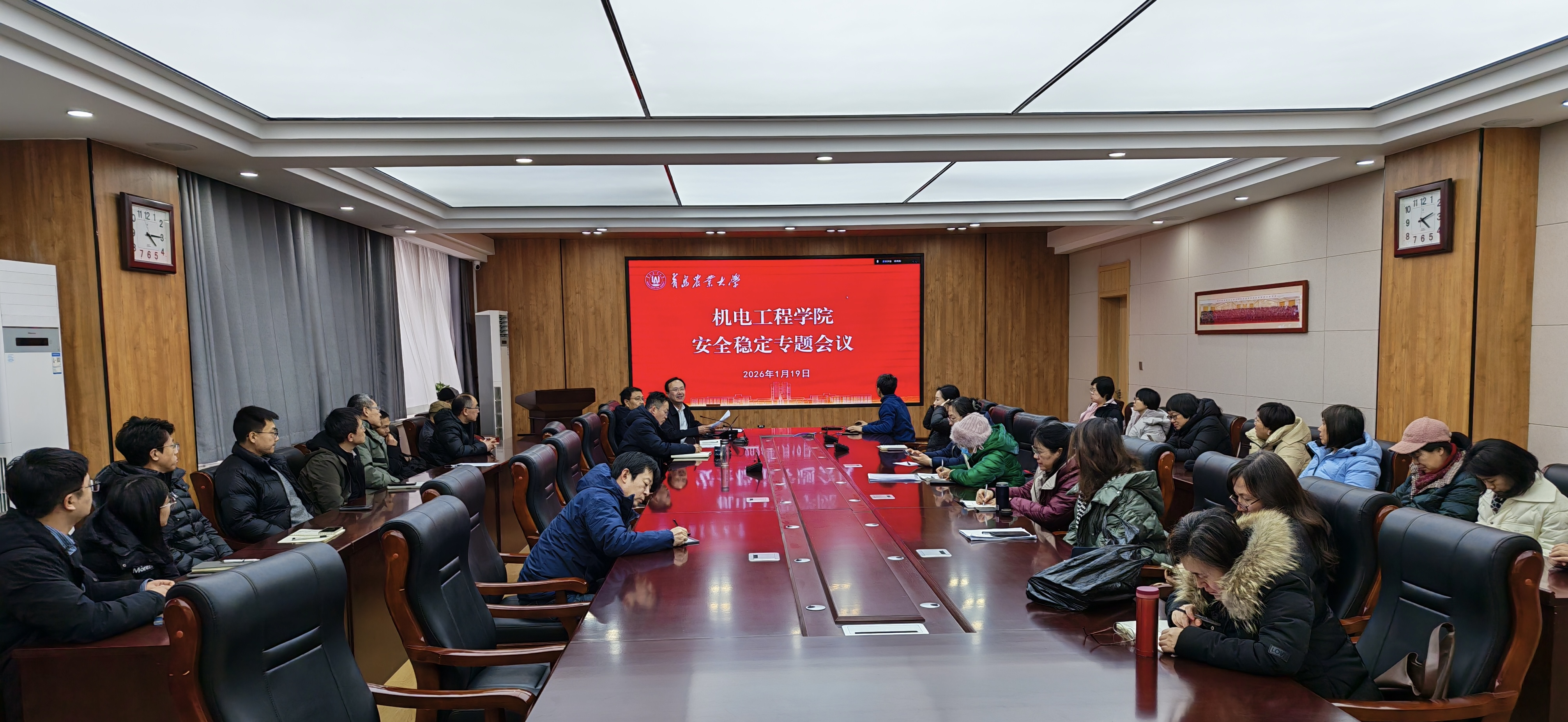 为深入贯彻落实学校安全稳定工作专题会议精神,扎实做好2026年学院安全稳定工作,切实筑牢校园师生安全防线,1月19日下午,机电工程学院召开安全稳定专题会议。会议由学院党委书记吕玉亭主持,全体教职工参加会议。