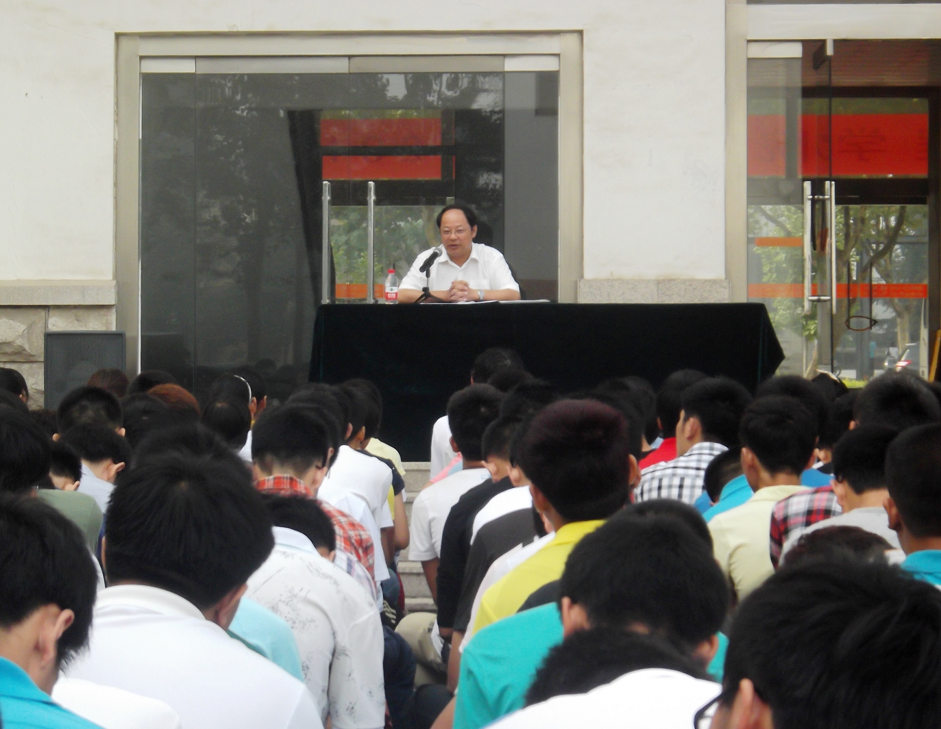 9月11日上午,我院院长尚书旗在工程楼后广场作了题为“学院文化、学院发展介绍及专业化教育”的讲座。我院12级全体新生参加了此次讲座。