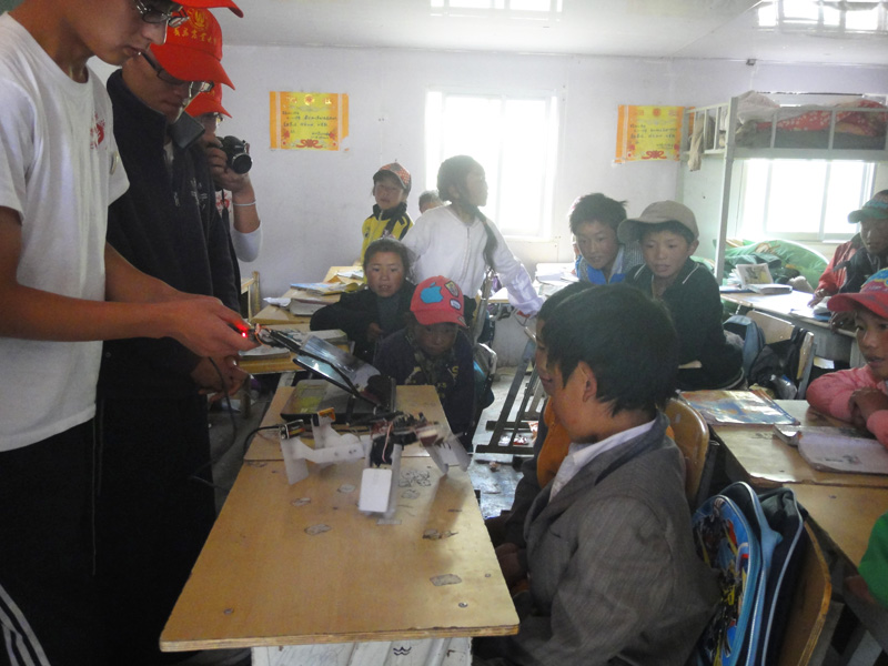 机器人做俯卧撑这个高难度的动作,更是看得孩子们惊奇不已,掌声连连。“我要上大学,我要学好多知识,也要做一个这样能跳舞的机器人。”机器人表演过后,四年级的江才仁告诉服务团的老师们。