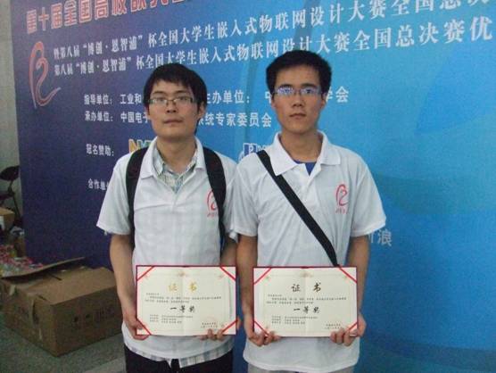 7月7日,第八届“博创・恩智浦”杯全国大学生嵌入式物联网设计大赛总决赛在北京航空航天大学举行,全国共有710多个参赛队1000多名同学报名参加。“博创・恩智浦”杯全国大学生嵌入式物联网设计大赛到目前已经举办了八届,参赛队伍之多、范围之广在全国各高校中产生了巨大影响力。 在教务处和学院的大力支持下,我院积极组队参赛。由白皓然和孙景福老师指导的作品“基于LPC1769全自动播种机的设计”和“智能农业控制系统”在初赛中表现优异,分获一二等奖。其中,作品“基于LPC1769全自动播种机的设计”进入总决赛。总决赛中,我院参赛队员房长虎、温连朋、崔贺同学以出色的表现完成了作品的PPT演说以及现场演示,并得到了大赛评委的一致好评,取得了恩智浦专项一等奖的好成绩。