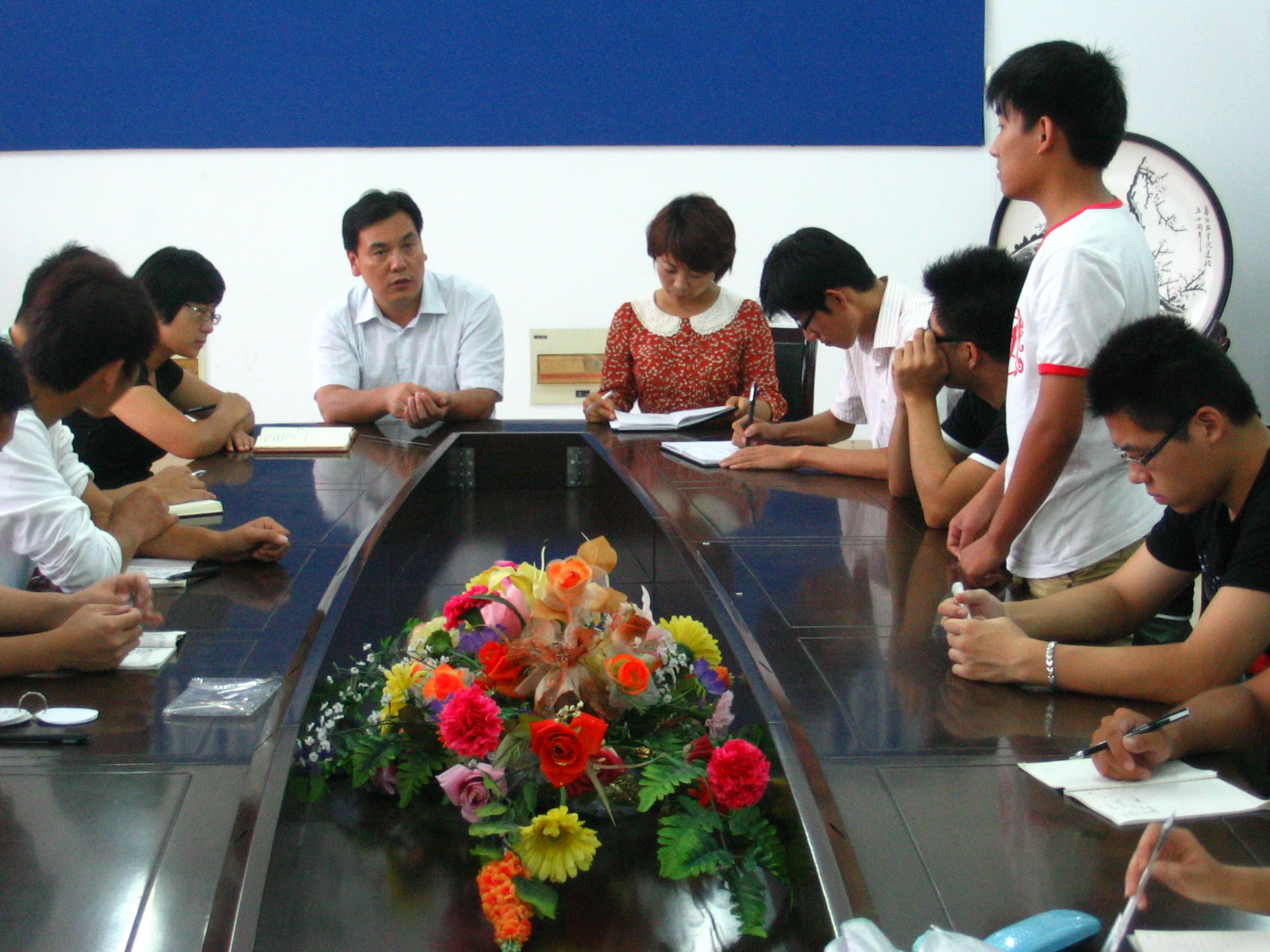 为了做好学院思想摸底与调查工作,了解学生的思想动态,更好地帮助同学们适应新学期的大学生活,8月21日下午,我院在工程楼二楼会议室召开新学期学生座谈会,院党委副书记孙景福,团委书记孙晓凤,学工办老师赵贤慧、王德国与三个年级的40余名学生代表就新学期各方面问题,进行了交流讨论。