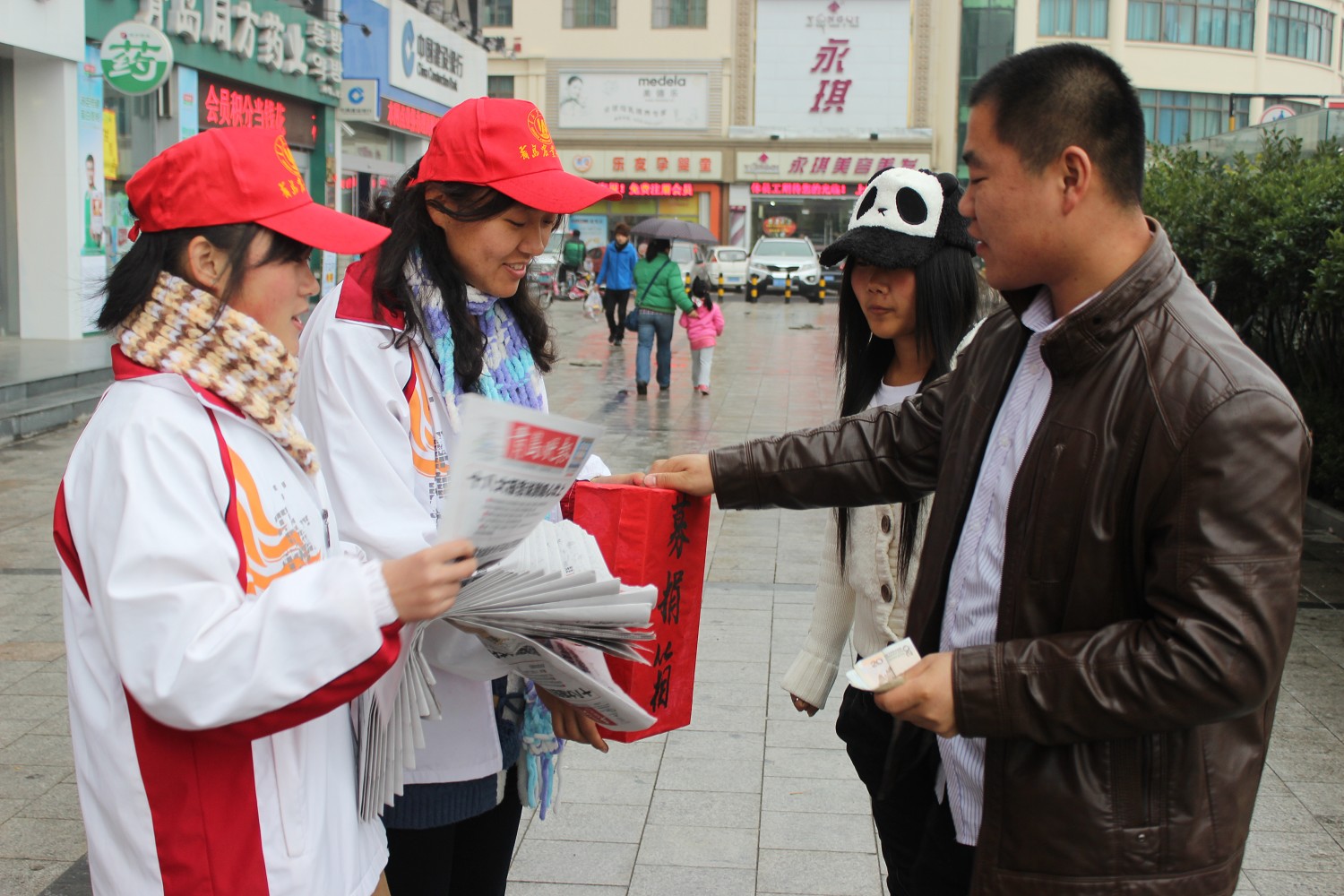 为更好的弘扬当代大学生的奉献精神,帮助西部地区失学儿童,为祖国西部建设贡献自己一份力。11月10日上午,由我院团委主办、社团部携手青岛晚报承办的大型爱心义卖报纸活动在大润发附近展开。