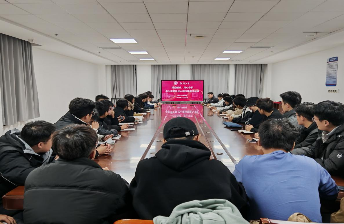 为进一步提升学生干部的专业素养,充分发挥其在心理健康教育网络体系中的积极作用,11月24日晚,机电工程学院在大学生创业中心B315会议室举办“用爱倾听,用心守护”学生朋辈队伍心理技能提升培训。培训由心理发展指导中心迟名龙老师主讲,学院辅导员高海成、2025级新生班长书记和心理委员共同参加培训。
