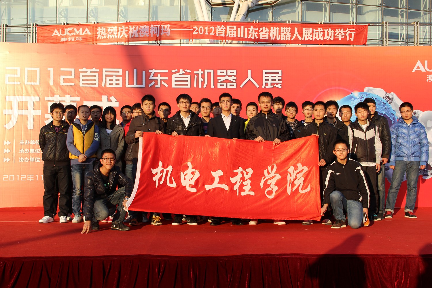 为开阔同学们的视野,提高广大同学的科技创新能力。11月24日,我院团委组织学生会科技实践部、挑战杯专项部和我院电子科技创新协会的同学们去观摩学习了在青岛大学举办的“澳柯玛――2012首届山东省机器人展”。