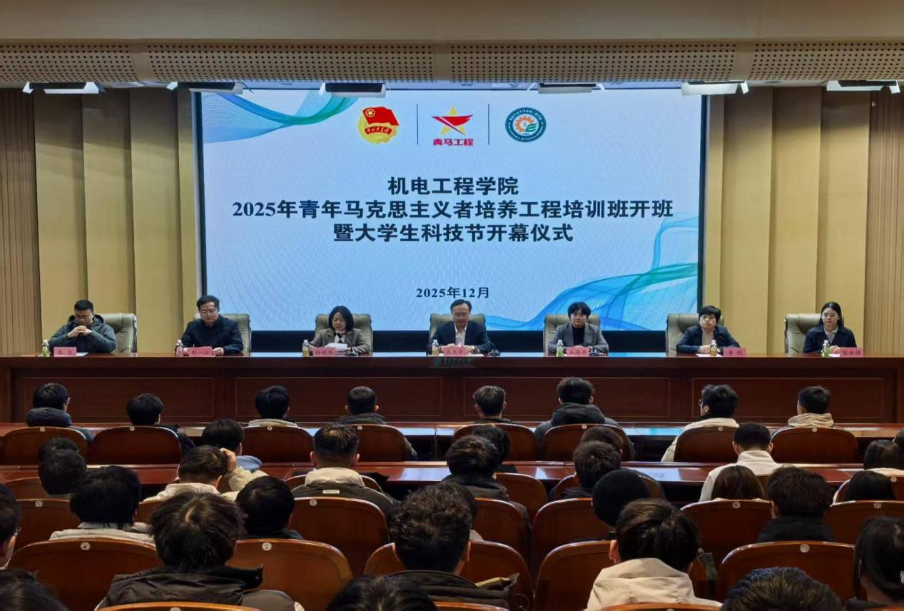 12月5日,机电工程学院2025年青年马克思主义者培养工程培训班开班仪式在学术会馆第一报告厅举行。学院党委书记吕玉亭,党委副书记、副院长王海燕出席会议,全体辅导员、各班级班长书记、培训班全体成员参会,会议由团委书记孙晓凤主持。