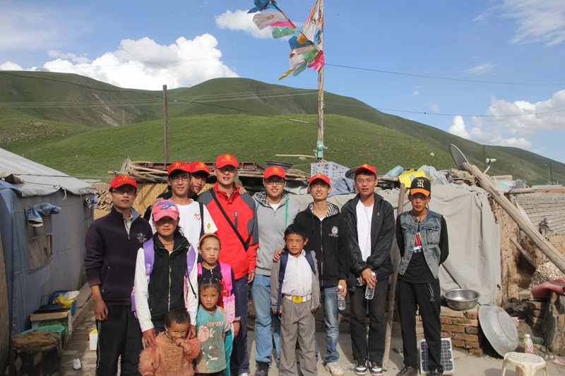 走访的对象是果青小学一年级同学文德扎西和六年级同学仁永的家中。去之前我们就了解到两位同学家中条件都不好,但一走进藏包我们仍旧被眼前的情境深深的震撼了。“一间裂缝的土房就是一家七八口人的衣食生活的所在,院子里几头牦牛,这就是所有的家当。尽管如此,藏族同胞们都十分热情,我们来走访,给孩子们送去书包,虽然藏民听不懂汉语,一直用微笑在迎接我们”,服务团的杨玉良同学说。