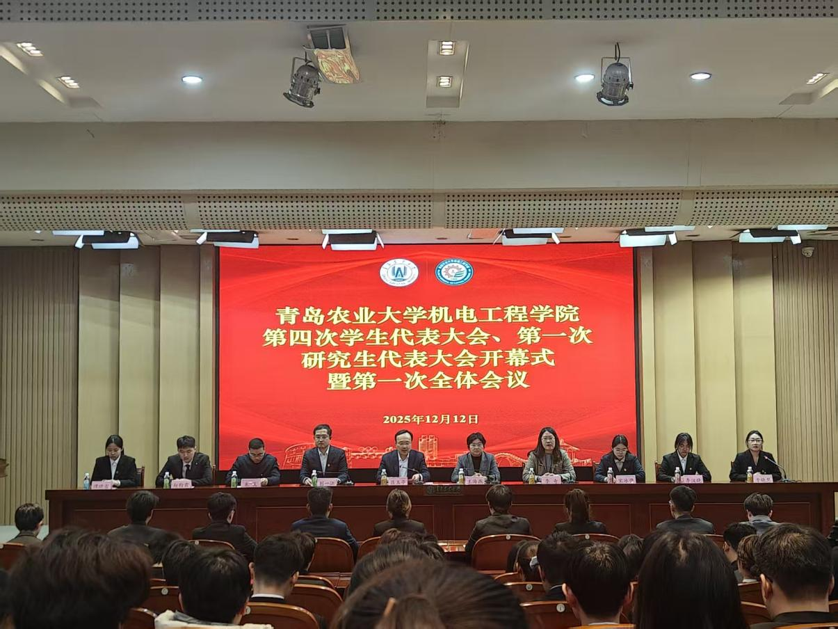 12月12日下午,青岛农业大学机电工程学院第四次学生代表大会在城阳校区学术会馆第一报告厅成功召开。机电工程学院党委书记吕玉亭,党委副书记、副院长王海燕出席大会,学院全体辅导员及190名学生代表齐聚一堂,共赴青春盛会、共话发展蓝图。
