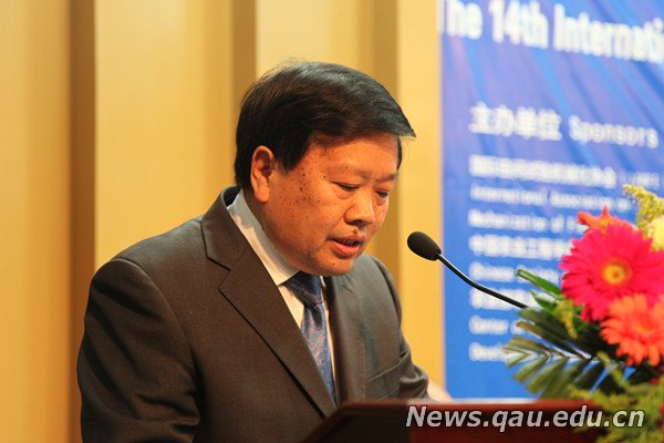 李宝笃校长致辞,对各位来宾表示热烈欢迎,并介绍了学校情况。李宝笃说,作为国际田间试验机械化协会(IAMFE)主席,尚书旗教授组织学校农业机械专业教师建立专门研究团队,积极参与国际田间试验机械化协会的相关研究,已经取得了一系列研究成果。目前,他带领的团队已经成为中国分会的核心研究团队,他们的工作成为国际田间试验机械化协会学术工作的有机组成部分,也有力地促进了学校科研工作的发展。