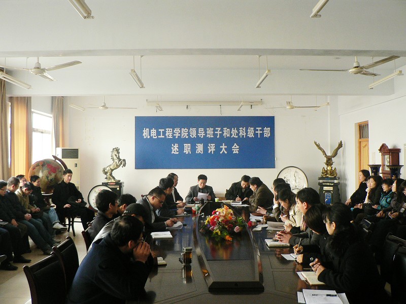 3月6日上午,机电工程学院在工程楼216召开领导班子和处科级干部述职测评大会。学校第三考核小组组长、组织部副部长隋成竹,宣传部副部长展学斌,理信学院团总支书记杨凯到场参加述职测评大会。会议由学院党总支书记蒋金琳主持,学院领导班子成员、处科级干部及全体教职工参加了会议。