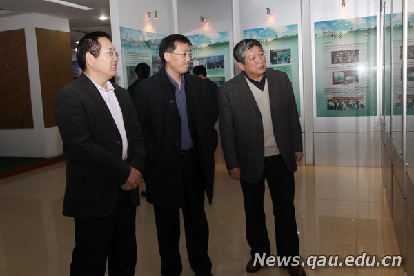 在学校发展成就展览馆,戴洪义副校长向潘海平副司长、李安宁副站长详细汇报了我校的建设发展历史以及近年来学科专业建设、人才培养、科学研究、社会服务等方面的发展情况。潘海平副司长、李安宁副站长对我校近年来各项事业取得的成绩给予了充分肯定。