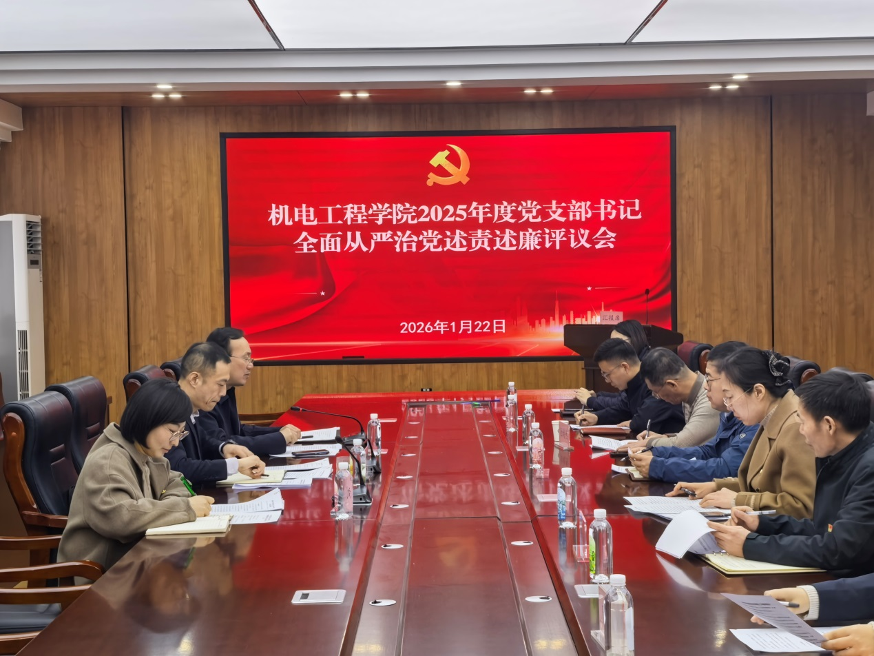 1月22日,机电工程学院在工程楼会议室召开2025年度党支部书记全面从严治党述责述廉和抓基层党建工作述职评议会议。校纪委(监察专员办公室)综合处副处长徐浩列席会议并讲话,学院领导班子成员、党支部书记及委员参加会议,学院党委书记吕玉亭主持会议。