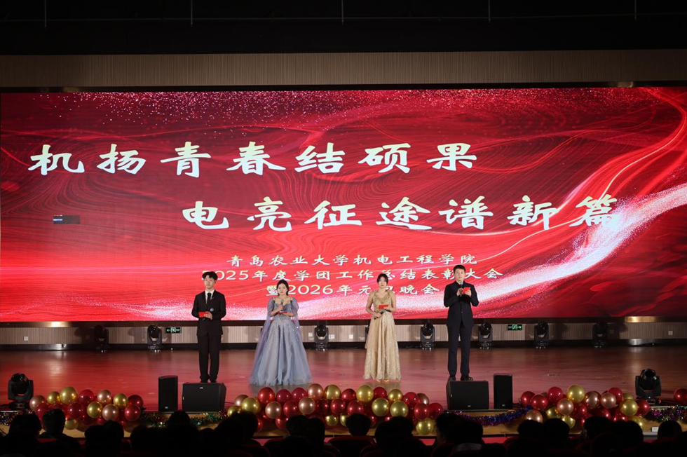 为系统总结2025年度学团工作经验,强化朋辈引领效应,凝聚榜样奋进力量,推动学风建设常态化、长效化发展,12月24日晚,机电工程学院于平度校区大学生创业中心多功能展厅举办“机扬青春结硕果,电亮征途谱新篇”2025年度学团工作总结表彰大会暨2026年元旦晚会。校党委副书记田义轲,副校长孟晓军,平度校区党委副书记、平度校区管理办公室主任王国辉,学生工作处处长杨凯,校团委副书记安金鹏,学院党委书记吕玉亭、副院长王家胜、院长助理王宝超出席活动并颁奖,学院全体辅导员、部分教师代表、大一全体学生及高年级学生代表欢聚一堂,共同见证荣光,共赴崭新征程。