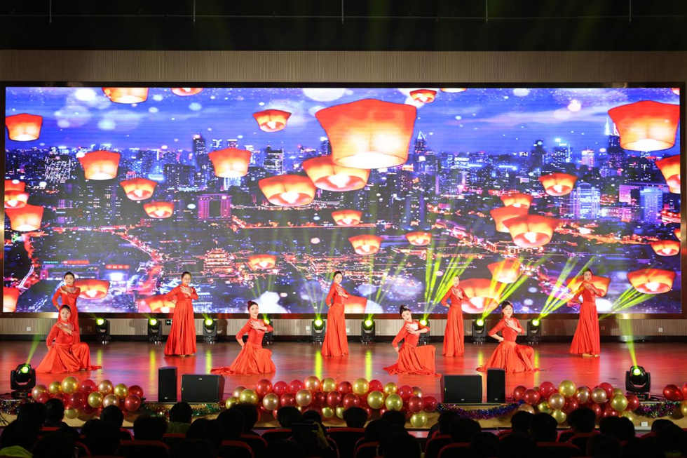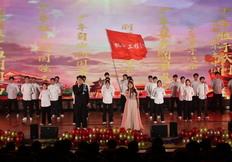 晚会在恢弘大气的开场舞《灯火里的中国》中正式启幕。歌曲《飞云之下》诉说着当代大学生在追寻梦想路上的努力与奋进;辅导员高海成带领学生代表共同演唱的《明天会更好》将晚会氛围推向小高潮。舞台剧《元旦大作战》极具创意,以班级日常学习生活为蓝本,再现校园时光的点滴趣事,让现场观众忍俊不禁的同时倍感温暖;诗朗诵《不朽的丰碑》、《少年中国说》、舞蹈《禾下乘凉梦》生动展现了机电工程学院师生同心、朝气蓬勃的精神风貌,既是对时代的回应,更是机电学子许下的青春承诺,让现场氛围达到顶峰。