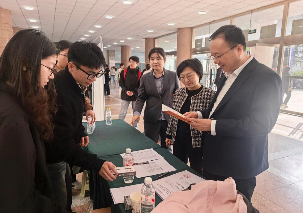 为深入贯彻落实党中央、国务院关于促进高校毕业生就业创业工作的决策部署,精准搭建用人单位与毕业生双向选择平台,4月2日,机电工程学院联合理学与信息科学学院、建筑工程学院、园林与林学院在文经楼联合举办2026届毕业生专场招聘会。机电工程学院领导班子到招聘会现场与用人单位交流。